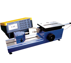 The Mini-Horizontal TELS is the ideal instrument for checking small dimensions. It is part of the horizontal instruments family.The instrument is mainly used for checking internal and external dimensions, such as ring gauges,  plug gauges, thread plug gauges and for measuring precision production parts.  The reliable concept is easily suitable for the use in workshop environment.An electronic probe and digital display unit or simply a dial indicator can be applied to perform all measurements. The selection of the measu-ring system depends on the required accuracy.The range for internal measurements of 10 to 100 mm and external measurements of 0 to 100 mm covers a large number of applications. The absolute measuring range is 25 mm and a preset setting is necessary to obtain an entire length.